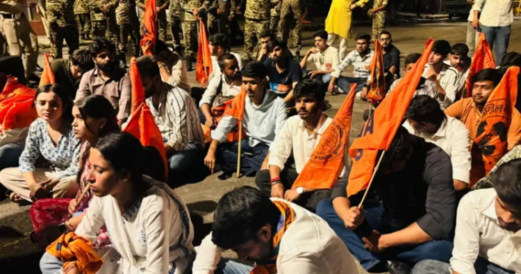 നിരപരാധികളായ പ്രവർത്തകരെ വിട്ടയക്കണമെന്ന് ആവശ്യപ്പെട്ട് ദൽഹിയിൽ ജന്തർമന്ദറിൽ ചൊവ്വാഴ്ച എബിവിപി ശക്തമായ പ്രതിഷേധ പ്രകടനം നടത്തി.