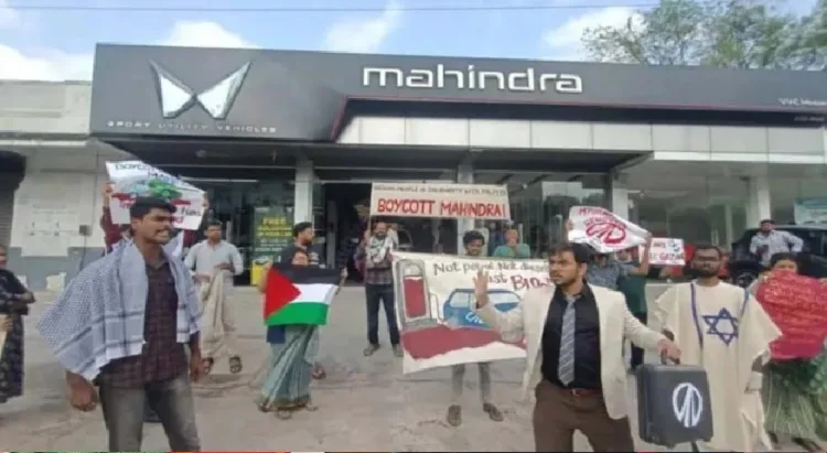 ‘Boycott Mahindra’ എന്ന പ്ലക്കാർഡുമായും ഉയർത്തിപ്പിടിച്ചായിരുന്നു ഹമാസ് അനുകൂലികളുടെ പ്രതിഷേധം . ഡൽഹി, മുംബൈ, പൂനെ, റോഹ്തക്, ചണ്ഡീഗഢ്, വിശാഖപട്ടണം, വിജയവാഡ, പറ്റ്ന തുടങ്ങിയ സ്ഥലങ്ങളിലെ മഹീന്ദ്ര ഷോറുമുകൾക്ക് മുന്നിൽ പ്രതിഷേധ പ്രകടനം നടന്നു.തെരുവ് നാടകം ഉൾപ്പെടെയായിരുന്നു പ്രതിഷേധം.