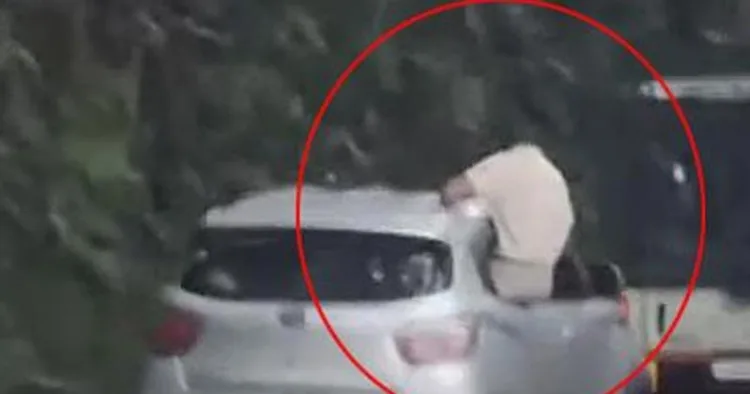 ഞായറാഴ്ച ഉച്ചയ്ക്ക് രണ്ട് മണിയോടെയാണ് സംഭവം. പിറകില് വന്ന യാത്രക്കാരാണ് അപകടകരമായ യാത്രയുടെ ദൃശ്യങ്ങള് പകര്ത്തിയത്.