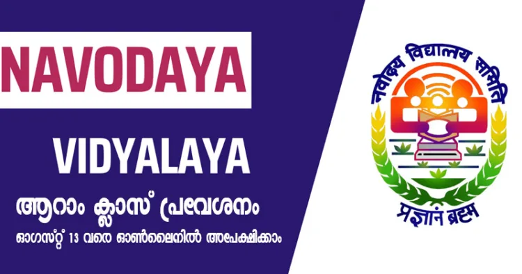 നവോദയ വിദ്യാലയങ്ങളില്‍ ആറാം ക്ലാസ് പ്രവേശനം; ഓഗസ്റ്റ് 13 വരെ ഓണ്‍ലൈനില്‍ അപേക്ഷിക്കാം