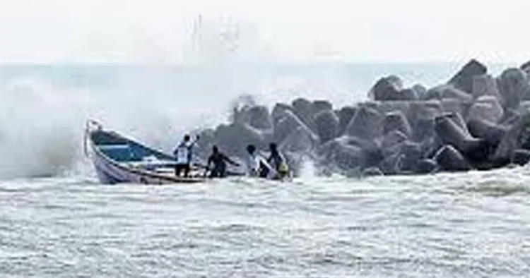 അഞ്ചുതെങ്ങ് സ്വദേശി അനുവിന്റെ ഉടമസ്ഥതയിലുള്ള കര്മ്മല മാതാ എന്ന ചെറു വള്ളമാണ് ശക്തമായ തിരയില്പ്പെട്ട് മറിഞ്ഞത്.മുതലപ്പൊഴിയില് മത്സ്യബന്ധന ബോട്ടുകള് അപകടത്തില്പ്പെടുന്നത് പതിവാണ്.