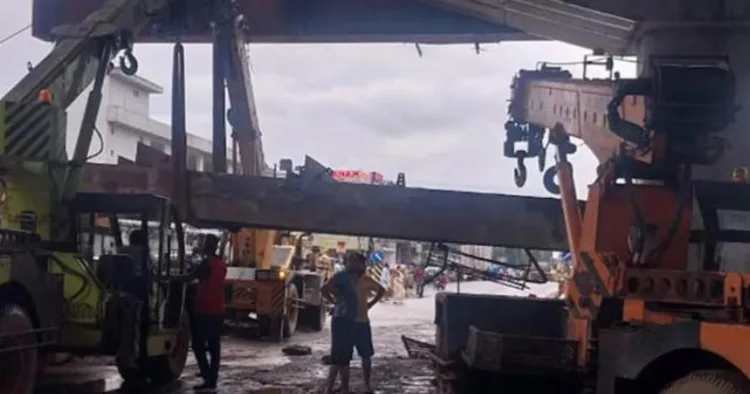തുറവൂർ ഉയര പാതയിലെ ഇരുമ്പ് ബീമുകൾ നിലം പതിച്ചു; തൂണിനടിയിൽ പാർക്ക് ചെയ്തിരുന്ന പുള്ളർ ലോറി തകർന്നു