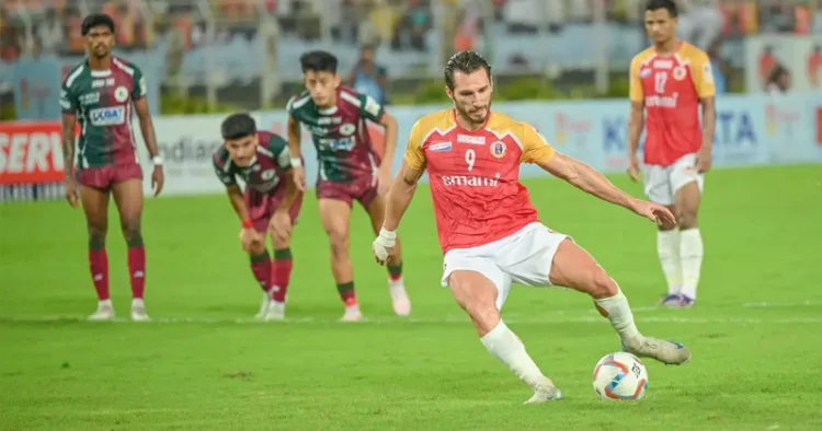 ള് ടൂര്ണമെന്റായ ഡ്യുറന്ഡ് കപ്പ് ക്വാര്ട്ടറില് ഒന്നിനെതിരേ രണ്ട് ഗോളുകള്ക്ക് ഈസ്റ്റ്ബംഗാള് മോഹന്ബഗാനെ പരാജയപ്പെടുത്തി. മുന് കേരളബ്ലാസ്റ്റേഴ്സ് താരം ദിമിത്രി ഡയമന്റക്കോസിന്റെ ഇരട്ടഗോള് പ്രകടനമാണ് ഈസ്റ്റ് ബംഗാളിന് ഉജ്വല ജയമൊരുക്കിയത്. മത്സരത്തിന്റെ തുടക്കത്തില്ത്തന്നെ ഹമീദ് പരിക്കേറ്റ് പുറത്തായതോടെയാണ് ഡയമന്റക്കോസ് കളത്തിലെത്തിയത്.