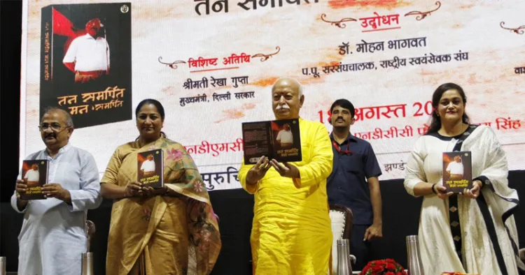 ന്യൂദൽഹി: രാഷ്ട്ര നിർമ്മാണത്തിൽ വ്യക്തിഗതമായ സമർപ്പണത്തിന് നിർണായക പങ്കുണ്ടെന്ന് ആർഎസ്എസ് സർസംഘചാലക് ഡോ. മോഹൻ ഭാഗവത് . സ്വർഗീയ രമേശ് പ്രകാശിന്റെ ജീവിതത്തെ അധികരിച്ച് തയാറാക്കിയ തൻ സമർപിത്, മൻ സമർപിത്” എന്ന ജീവചരിത്ര പുസ്തകത്തിന്റെ പ്രകാശനം എൻഡിഎംസി കൺവെൻഷൻ സെന്ററിൽ നിർവഹിക്കുകയായിരുന്നു അദ്ദേഹം.