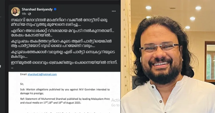 കുടുംബം തകർത്തവന്റെ കൂടെ ആണ് പാർട്ടിയെങ്കിൽ ആ പാർട്ടിയോട് ഗുഡ് ബൈ പറയേണ്ടി വരും: കോടതിയിൽ കാണാമെന്ന് ഷർഷാദ്