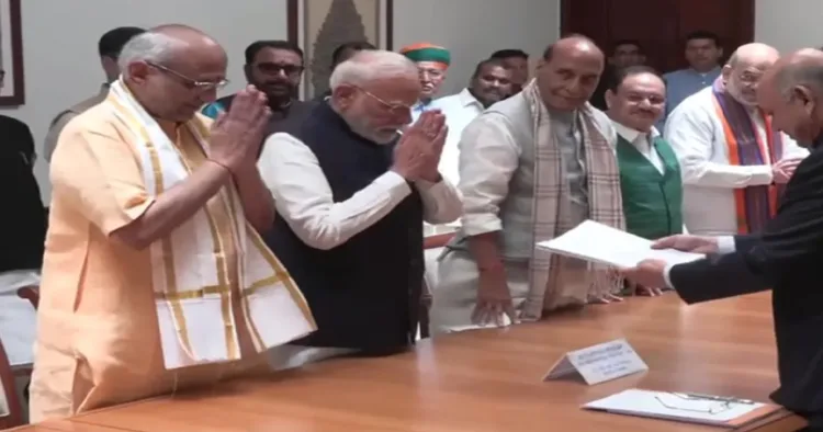 പൊതുസേവനത്തോടുള്ള രാധാകൃഷ്ണന്റെ പ്രതിബദ്ധതയെ പ്രധാനമന്ത്രി മോദി സോഷ്യൽ മീഡിയയിൽ പ്രശംസിച്ചതിന് തൊട്ടുപിന്നാലെയാണ് നാമനിർദ്ദേശ പത്രിക സമർപ്പിച്ചത്. പാർശ്വവൽക്കരിക്കപ്പെട്ട സമൂഹങ്ങളെ ശാക്തീകരിക്കുന്നതിനായി നിരന്തരം പ്രവർത്തിച്ച “സമർപ്പണവും, വിനയവും, ബുദ്ധിശക്തിയും” ഉള്ള ഒരു നേതാവായിട്ടാണ് പ്രധാനമന്ത്രി അദ്ദേഹത്തെ വിശേഷിപ്പിച്ചത്.