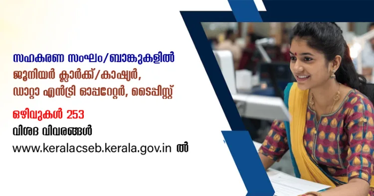 യോഗ്യത- എസ്എസ്എല്സി/ തത്തുല്യം; ജൂനിയര് ഡിപ്ലോമ ഇന് കോ- ഓപ്പറേഷന് (ജെഡിസി), ബികോം (സഹകരണം) അല്ലെങ്കില് ബിരുദവും സഹകരണ ഹയര്ഡിപ്ലോമയും (എച്ച്ഡിസി/ എച്ച്ഡിസി ആന്റ് ബിഎം) അല്ലെങ്കില് കേരള കാര്ഷിക സര്വ്വകലാശാലയുടെ ബിഎസ് സി (സഹകരണ ആന്റ് ബാങ്കിംഗ് ) പ്രായപരധി 18-40 വയസ്.