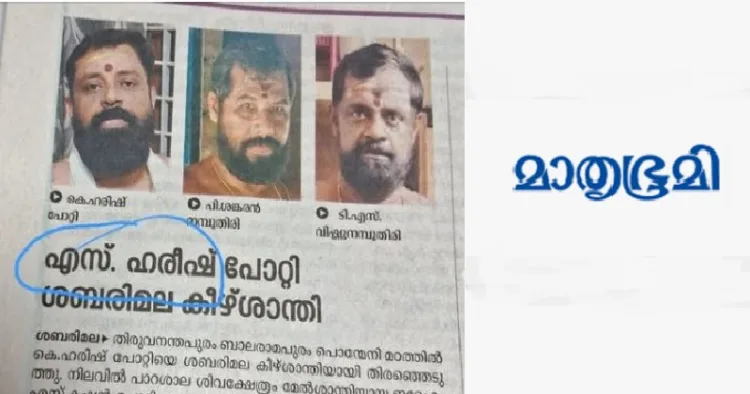 മാതൃഭൂമി പത്രത്തിന് ഇപ്പോഴും ഹിന്ദുക്കളെയും ക്ഷേത്രങ്ങളെയും വിമര്‍ശിക്കുന്ന ‘മീശ’ നോവലിന്റെ ഹാങ്ങോവര്‍; ശബരിമല കീഴ്ശാന്തി എസ്. ഹരീഷ് പോറ്റിയെന്ന്