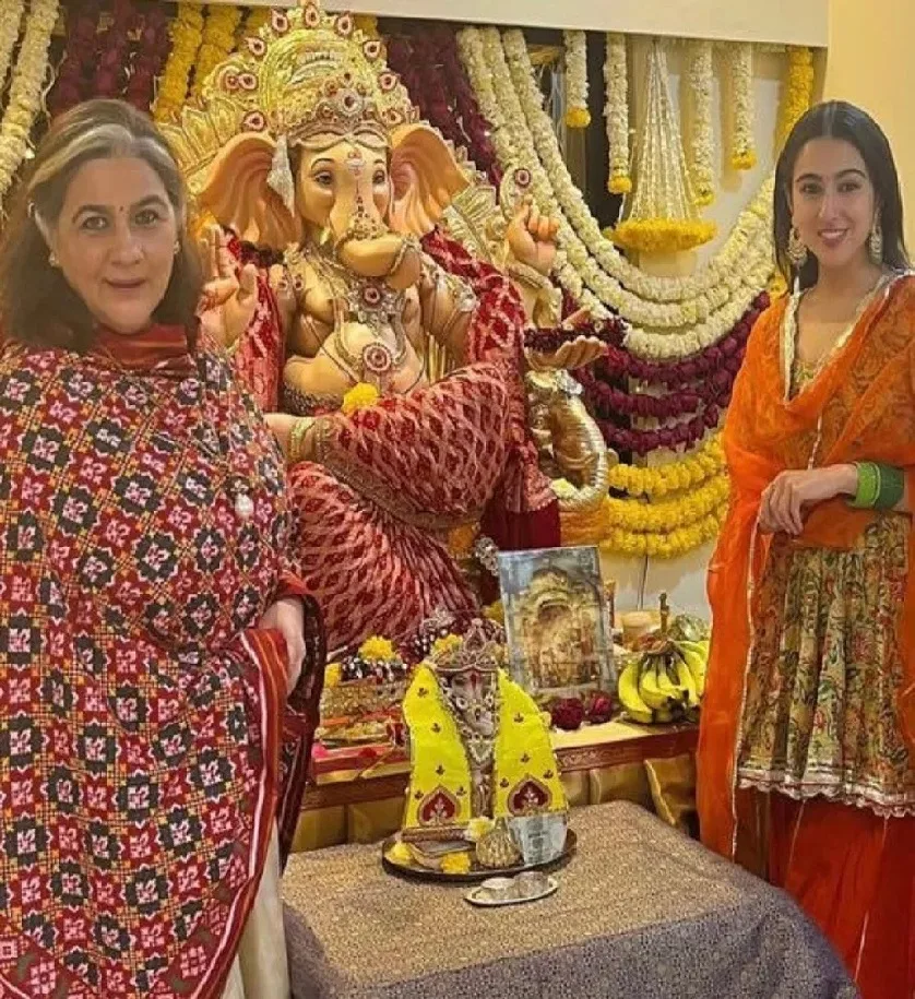 സാറ അലി ഖാൻ മുസ്ലീമാണെങ്കിലും ഹിന്ദുമതം ആഘോഷിക്കാൻ ഇഷ്ടപ്പെടുന്നയാളാണ്. അമ്മയ്ക്കൊപ്പമായിരുന്നു സാറ ഗണേശ ചതുർത്ഥി ആഘോഷിച്ചത് .