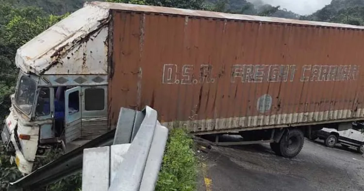 ഒന്പതാം വളവില് ഉച്ചയ്ക്ക് ഒരുമണിയോടെയാണ് സംഭവം.സുരക്ഷ വേലി തകര്ന്ന് ലോറി അല്പ്പം മുന്നോട്ട് നീങ്ങിയെങ്കിലും കൊക്കയില് വീണില്ല.