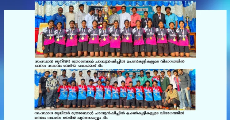 ആലപ്പുഴ: ചെന്നിത്തല ഗവണ്മെന്റ് മോഡല് യുപിഎസ് സ്കൂളില് നടന്ന 24-ാമത് സംസ്ഥാന ജൂനിയര് ത്രോബോള് ചാമ്പ്യന്ഷിപ്പില് പെണ്കുട്ടികളുടെ വിഭാഗത്തില് ഒന്നാം സ്ഥാനം പാലക്കാടും രണ്ടാം സ്ഥാനം എറണാകുളവും സ്വന്തമാക്കി. മൂന്നാം സ്ഥാനം കണ്ണൂര്, കോട്ടയം ടീമുകള് കരസ്ഥമാക്കി. ആണ്കുട്ടികളുടെ ഭാഗത്തില് എറണാകുളം ജേതാക്കളായപ്പോള് ആലപ്പുഴ റണ്ണറപ്പുകളും പാലക്കാട്, മലപ്പുറം ടീമുകള് മൂന്നാം സ്ഥാനവും നേടി. ആലപ്പുഴ രണ്ടാം സ്ഥാനവും കരസ്ഥമാക്കിയപ്പോള് പാലക്കാട്, മലപ്പുറം ടീമുകള് മൂന്നാം സ്ഥാനത്തിന് അര്ഹരായി.