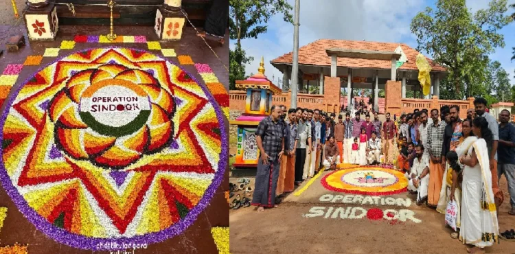 കൊല്ലം : ഓപ്പറേഷൻ സിന്ദൂർ എന്നെഴുതിയ അത്തപ്പൂക്കളം കണ്ട് ഹാലിളകുന്ന കേരള പൊലീസിന് മുന്നിൽ വീണ്ടും അതേ ഓപ്പറേഷൻ സിന്ദൂർ പൂക്കളം . ചെട്ടികുളങ്ങര ക്ഷേത്രത്തിൽ ദേവിയ്ക്ക് മുന്നിൽ ഒരുക്കിയ പൂക്കളത്തിലാണ് ഓപ്പറേഷൻ സിന്ദൂർ എന്ന് പൂക്കളാൽ എഴുതിയിരുന്നത് . നിരവധി പേരാണ് ഇതിന്റെ ദൃശ്യം പങ്ക് വച്ചിരിക്കുന്നത് .