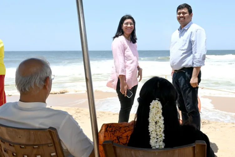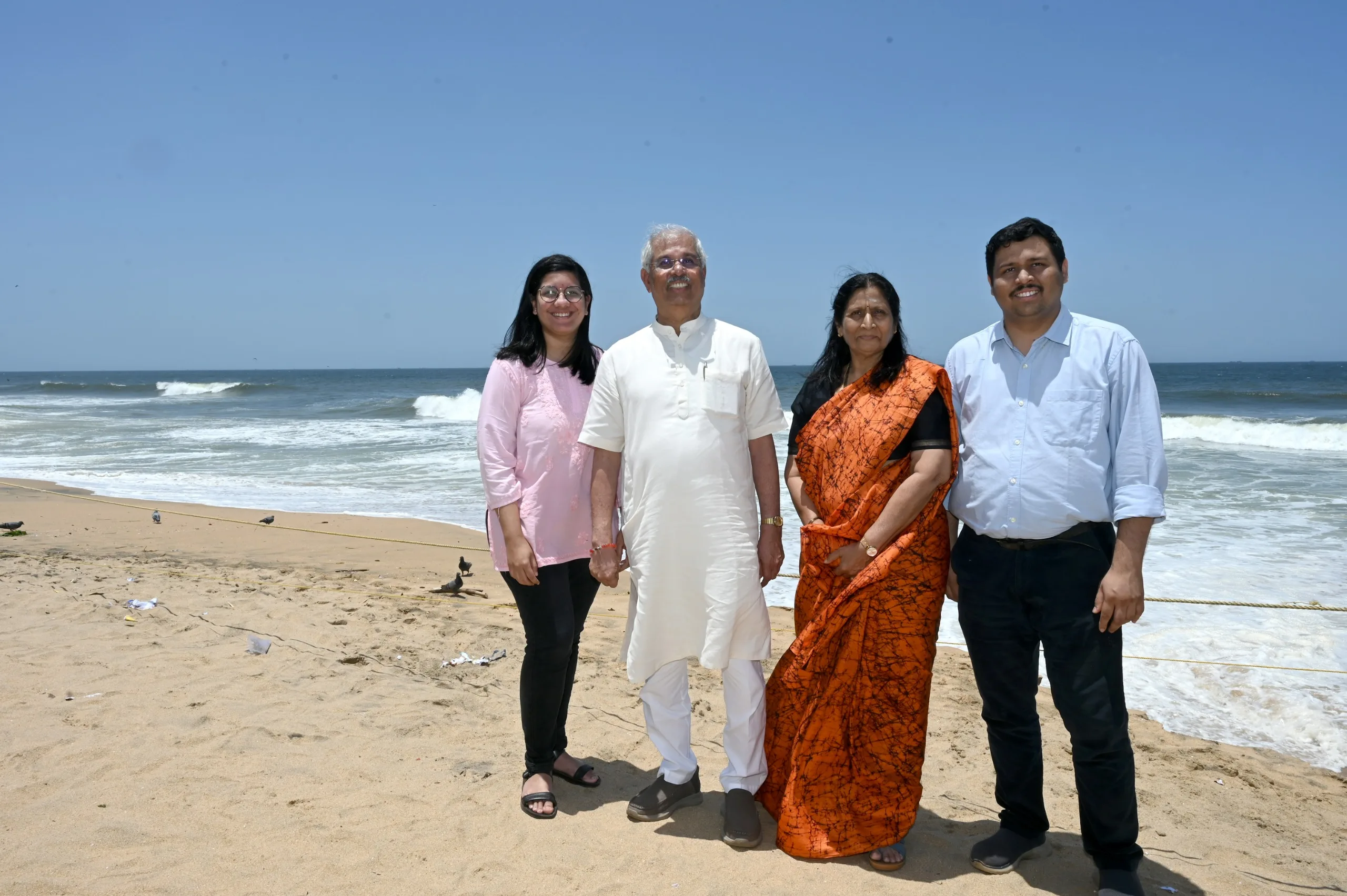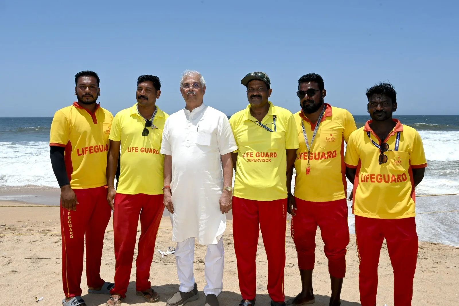 ശിവഗിരിയിലെ പരിപാടി കഴിഞ്ഞ് ബീച്ചിലെത്തിയപ്പോള് നട്ടുച്ച. പൊള്ളുന്ന വെയില്. ചൂട് കണക്കാക്കാതെ തീരത്തേയ്ക്ക് ഇറങ്ങി. സന്ദര്ശകരുമായി കുശലം പറഞ്ഞു. ലൈഫ് ഗാര്ഡുകളോട് ജോലിയെക്കുറിച്ച് ചോദിക്കുകയും ഒപ്പം നിന്ന ചിത്രം എടുക്കുകയും ചെയ്തു.