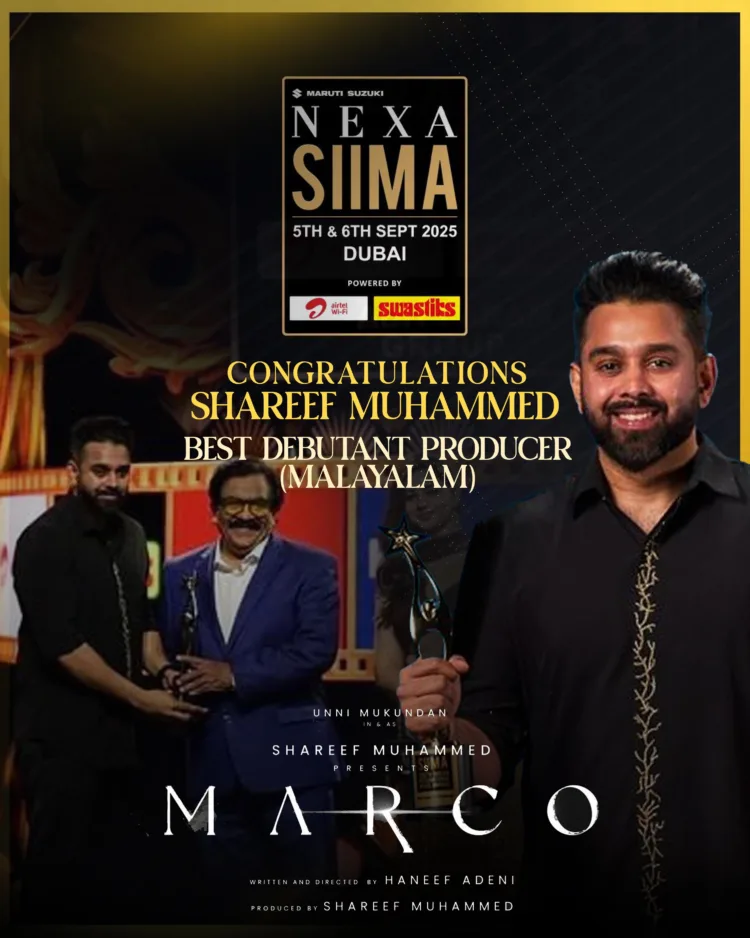 കൊച്ചി : ‘മാർക്കോ’ സിനിമയുടേയും ഇറങ്ങാനിരിക്കുന്ന ‘കാട്ടാളൻ’ സിനിമയുടേയും പ്രൊഡ്യൂസറായ ഷരീഫ് മുഹമ്മദിനെ തേടി സൈമ അവാർഡ്സ് 2025 മികച്ച നവാഗത നിർമ്മാതാവിനുള്ള പുരസ്കാരം. ദുബായ്-ൽ വെച്ച് നടന്ന ചടങ്ങിലാണ് ‘മാർക്കോ’ എന്ന സിനിമ നിർമ്മിച്ചതിലൂടെ മികച്ച നവാഗത നിർമ്മാതാവിനുള്ള പുരസ്കാരം ഷരീഫ് മുഹമ്മദിനെ തേടിയെത്തിയത്.