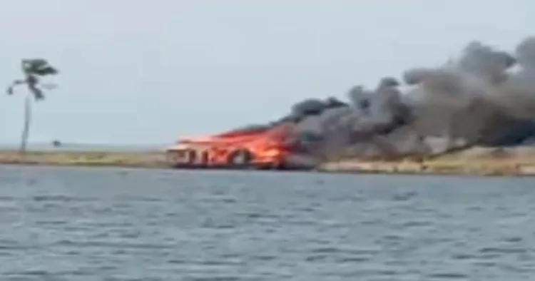 ബോട്ടിന്റെ ഓല മേഞ്ഞ ഭാഗത്ത് തീ പടര്ന്ന് പൂര്ണമായും ബോട്ട് കത്തി. ഷോര്ട്ട് സര്ക്യൂട്ട് ആണ് തീപിടുത്തത്തിന് കാരണമെന്നാണ് പ്രാഥമികനിഗമനം.