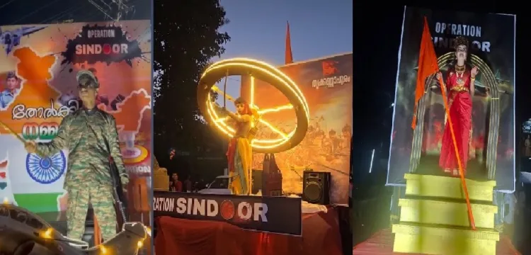 കൊല്ലം : അത്തപ്പൂക്കളത്തിൽ ‘ ഓപ്പറേഷൻ സിന്ദൂർ ‘ എന്ന് എഴുതിയതിന്റെ പേരിൽ നടപടിയ്‌ക്ക് തുനിഞ്ഞ കേരള പൊലീസിന് മുന്നിൽ വീണ്ടും അഭിമാനമായി ഓപ്പറേഷൻ സിന്ദൂർ . ഇക്കുറി ശോഭായാത്രയിൽ സംസ്ഥാനത്തുടനീളം ഓപ്പറേഷൻ സിന്ദൂർ നിശ്ചല ദൃശ്യങ്ങൾ ഒരുക്കിയിരുന്നു.