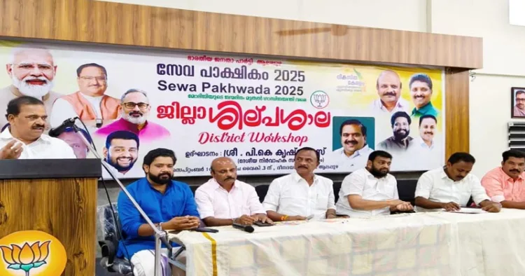 ആലപ്പുഴ: പ്രധാനമന്ത്രി നരേന്ദ്രമോദിയുടെ 75-ാം ജന്മദിനത്തോടനുബന്ധിച്ച് നടത്തപ്പെടുന്ന സേവാ പാക്ഷികത്തിന്റെ ആലപ്പുഴ ജില്ലാ ശില്പശാല ദീനദയാല്‍ ഭവനില്‍ ബിജെപി ദേശീയ നിര്‍വാഹക സമിതി അംഗം പി കെ കൃഷ്ണദാസ് ഉദ്ഘാടനം ചെയ്തു .രാജ്യം കണ്ട