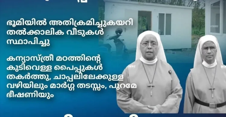 കളമശ്ശേരി:രാത്രിയുടെ മറവിൽ ഒരു സംഘം SDPI ഗുണ്ടകൾ എറണാകുളം അങ്കമാലി അതിരൂപതയുടെ കീഴിലുള്ള മാർത്തോമാ ഭവന്റെ 100 മീറ്ററോളം വരുന്ന കമ്പൗണ്ട് മതിൽ തകർത്തു കയറി. ഇവർ ക്രെയിൻ ഉപയോഗിച്ച് താൽക്കാലിക കോൺക്രീറ്റ് വീടുകൾ സ്ഥാപിച്ച് അകത്ത് താമസമാക്കിയിരിക്കുന്നു , ആശ്രമത്തിലെ ഒരു ഭാഗത്തുള്ള കന്യാസ്ത്രീ മഠത്തിലേക്കുള്ള കുടിവെള്ള പൈപ്പുകൾ തകർക്കുകയും അവർക്ക് ചാപ്പലിലേക്ക് പോകുന്നതിനുള്ള ഗേറ്റിനു മുന്നിൽ പ്രവേശനം തടസ്സപ്പെടുത്തുകയും ചെയ്തു. ആ ഭാഗത്ത് സ്ഥാപിച്ചിരുന്ന കന്യാസ്ത്രീ മഠത്തിന്റെ CCTV ക്യാമറകളും തകർക്കുകയും ചെയ്തിരിക്കുന്നു. . സ്ഥലത്ത് ഭീഷണിയും അസഭ്യവർഷവും നടത്തിയതായി പരാതി ഉയർന്നു.
