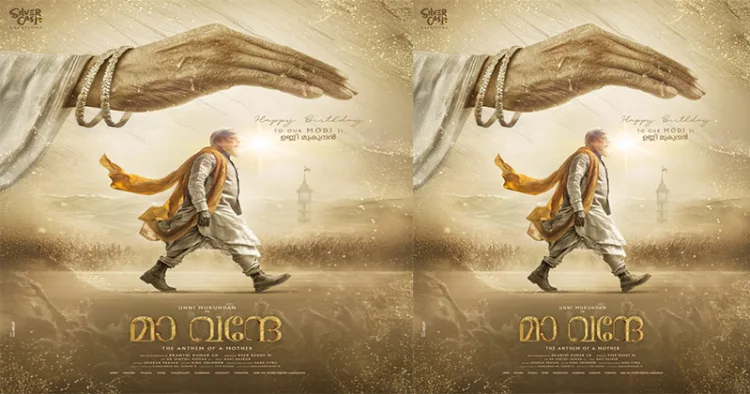 ഇന്ത്യൻ പ്രധാനമന്ത്രി ശ്രീ നരേന്ദ്ര മോദിയുടെ ജീവിതകഥ പറയുന്ന “മാ വന്ദേ” എന്ന ചിത്രത്തിന്റെ പുത്തൻ പോസ്റ്റർ പുറത്ത്. ചിത്രത്തിൽ നരേന്ദ്ര മോദി ആയി വേഷമിടുന്ന ഉണ്ണി മുകുന്ദന്റെ ജന്മദിനം പ്രമാണിച്ചാണ് ഈ പുതിയ പോസ്റ്റർ റിലീസ് ചെയ്തിരിക്കുന്നത്. ഈ പാൻ ഇന്ത്യൻ ചിത്രം നിർമ്മിക്കുന്നത് സിൽവർ കാസ്റ്റ് ക്രിയേഷൻസിന്റെ ബാനറിൽ വീർ റെഡ്ഡി എം ആണ്. നായകനായ ഉണ്ണി മുകുന്ദന്റെ ജന്മദിനത്തോടനുബന്ധിച്ച് വന്ന സ്പെഷ്യൽ പോസ്റ്ററിൽ പ്രധാനമന്ത്രി നരേന്ദ്ര മോദിയുടെ ചിത്രമാണ് ഉൾപ്പെടുത്തിയിരിക്കുന്നത്. തന്റെ അഭിനയ വൈഭവത്തിലൂടെ, നരേന്ദ്ര മോദിയായി ഉണ്ണി മുകുന്ദൻ ശക്തവും സ്വാഭാവികവുമായ പ്രകടനം കാഴ്ചവയ്ക്കാൻ ഒരുങ്ങുകയാണ്. ക്രാന്തി കുമാർ സി എച് ആണ് ചിത്രം രചിച്ചു സംവിധാനം ചെയ്യുന്നത്.