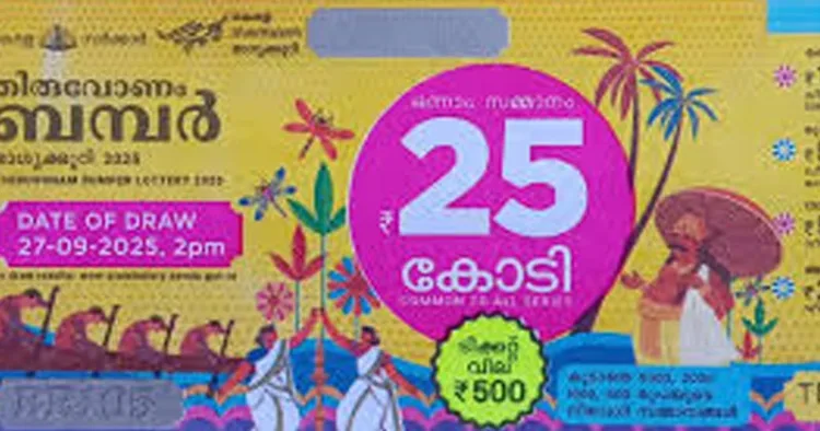 27-09-25 ശനിയാഴ്‌ച്ച നടത്താന്‍ നിശ്ചയിച്ചിരുന്ന തിരുവോണം ബമ്പര്‍ ഭാഗ്യക്കുറിയുടെ നറുക്കെടുപ്പ് ഒക്ടോബര്‍ 4 ലേക്ക് മാറ്റി. ചരക്കു സേവന നികുതിയുടെ മാറ്റവുമായി ബന്ധപ്പെട്ടും അപ്രതീക്ഷിതമായ കനത്ത മഴയിലും ടിക്കറ്റുകള്‍ പൂര്‍ണമായി വില്‍ക്കാന്‍ കഴിയാത്ത സാഹചര്യത്തില്‍ നറുക്കെടുപ്പ് തീയതി മാറ്റിവയ്‌ക്കണമെന്ന ഏജന്റുമാരുടെയും വില്പനക്കാരുടെയും അഭ്യര്‍ഥന പരിഗണിച്ചാണ് നറുക്കെടുപ്പ് മാറ്റിവച്ചത്.