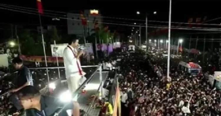വിജയിന്റെ പാര്ട്ടിയായ തമിഴ് വെട്രി കഴകം (ടിവിസി) ജില്ലാ സെക്രട്ടറി മതിയഴകന് 10,000 പേര് പങ്കെടുക്കുന്ന റാലിയ്ക്കാണ് അനുമതി തേടിയിരുന്നത്. നടന് വിജയ് എത്തുമെന്നറിഞ്ഞതോടെ 25000 പേരോളം തടിച്ചുകൂടി. കൂടുതല് ആളുകള് എത്തിച്ചേരാന് വേണ്ടി വിജയുടെ വരവ് സംഘാടകര് പരമാവധി വൈകിക്കുകയായിരുന്നു.