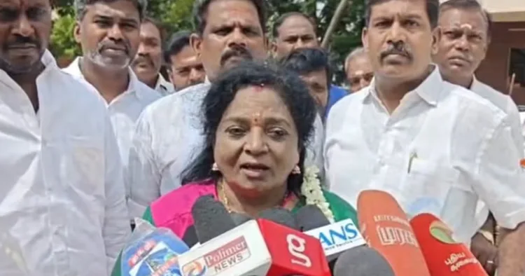 തമിഴ്നാട്ടിലെ സാമൂഹിക വിരുദ്ധ പ്രവര്ത്തനങ്ങളെയും, മോശമായി വരുന്ന ക്രമസമാധാന നിലയെയും എംകെ സ്റ്റാലിന് സര്ക്കാര് കണ്ടില്ലെന്ന് നടിക്കുന്നു. എന്നാല് ദേശീയവും പരമ്പരാഗതവും ആത്മീയവും രാജ്യസ്നേഹപരവുമായ സാംസ്കാരിക പ്രവര്ത്തനങ്ങള് തടയുന്നു. ഇത് ഡിഎംകെയുടെ ദേശവിരുദ്ധ മനോഭാവം വ്യക്തമാക്കുന്നുവെന്ന് സൗന്ദരാജന് വ്യക്തമാക്കി.