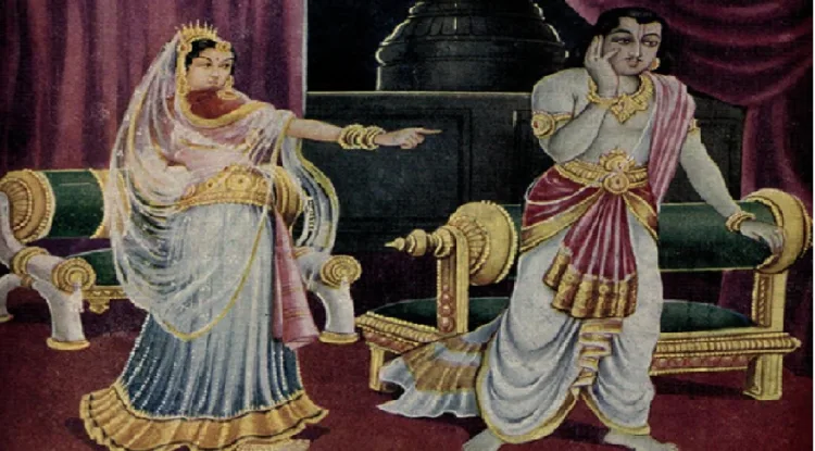 നായാട്ടിനിറങ്ങിയ ദശരഥമഹാരാജാവ് അരുവിയില് നി്ന്നു ജലം മണ്കുടത്തില് പകര്ന്ന മുനികുമാരനെ അമ്പെയ്തു വീഴ്ത്തിയത് തെറ്റിധാരണ കൊണ്ടായിരുന്നു, അറിയാതെ ചെയ്ത അബദ്ധം. ഏതോ മൃഗങ്ങൾ വെള്ളം കുടിക്കുകയാണെന്നായിരുന്നു രാജാവ് ധരിച്ചത്. പക്ഷെ തെറ്റ് മനസ്സിലാക്കിയ രാജാവിന് അന്ധരായ ആ മുനികുമാരന്റെ മാതാപിതാക്കളുടെ ശാപം, തന്റെ പ്രിയ പുത്രനായ ശ്രീരാമന്റെ വിരഹത്തിലൂടെയും തദ്വാരായുണ്ടായ മരണത്തിലൂടെയും ദശരഥന് അനുഭവിയ്ക്കേണ്ടി വന്നു.