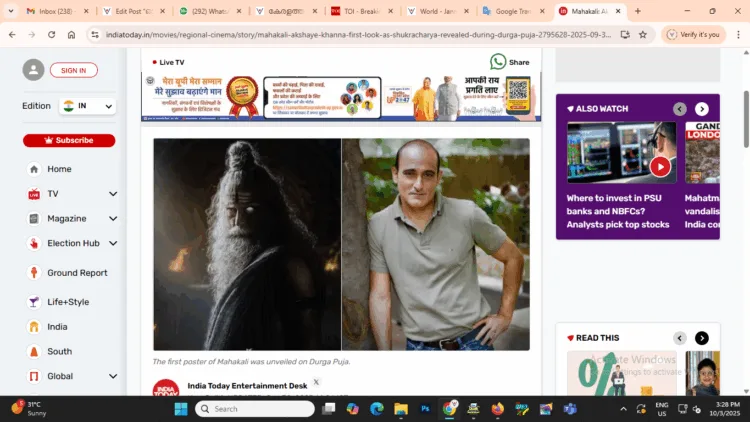 ‘മഹാകാളി’ എന്ന ചിത്രത്തിൽ നടൻ അക്ഷയ് ഖന്ന അസുരഗുരു ശുക്രാചാര്യനാകുന്നു. ഇതിന്റെ ഫസ്റ്റ് ലുക് പുറത്തിറങ്ങി.