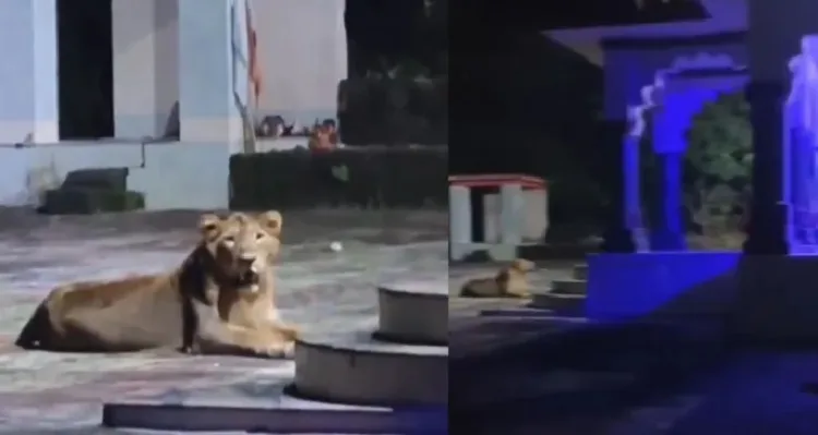 ദുർഗാ പൂജയ്‌ക്കിടെ ക്ഷേത്രത്തിന് കാവൽ നിൽക്കുന്ന സിംഹം ; വീഡിയോ വൈറലാകുന്നു
