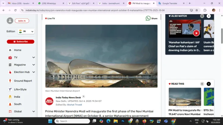 ഹായ് മുംബൈ; നവീ മുംബൈ എയർപോർട്ട് ആദ്യഘട്ടം ഉദ്ഘാടനം ഒക്‌ടോ.8ന്, മോദിയുടെ കൈകൊണ്ട്
