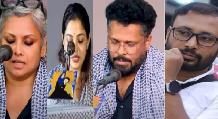തിരുവനന്തപുരം: ഗാസയ്ക്ക് വേണ്ടി കഫിയ ധരിച്ചെത്തിയ സിനിമക്കാരായ ആഷിക് അബു, ജ്യോതിര്മയി, സിതാര കൃഷ്ണകുമാര്, നിഖില വിമല്, ഇര്ഷാദ് അലി തുടങ്ങിയ സിനിമക്കാരോട് മറുചോദ്യവുമായി