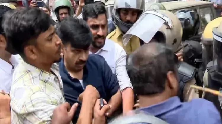 പോലീസും പ്രവര്ത്തകരും തമ്മില് ഉന്തും തള്ളുമുണ്ടായി.ലാത്തികൊണ്ട് പോലീസ് തന്നെ കുത്തുകയും അടിക്കുകയും ചെയ്തതായി സന്ദീപ് വാര്യര് ആരോപിച്ചു.