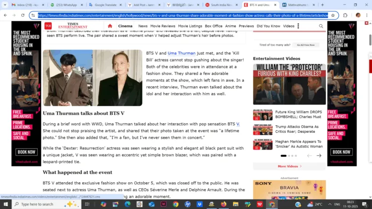 ബിടിഎസ് വിയും ഉമ തുർമനും; ആരാധകർക്ക് ആനന്ദാഘോഷം