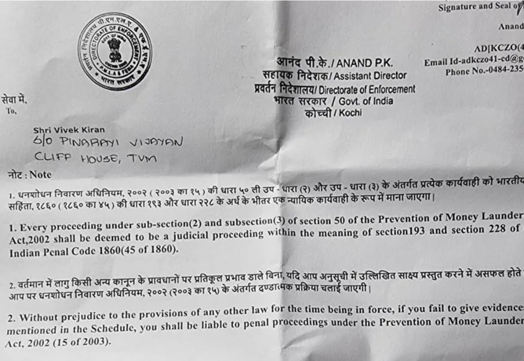 എൻഫോഴ്സ് ഡയറക്ടറേറ്റിൽ അസിസ്റ്റന്റ് ഡയറക്ടറായിരുന്ന പി കെ ആനന്ദാണ് സമൻസ് അയച്ചത്. സമൻസിൻ വിവേക് ഹാജരായിരുന്നില്ല.