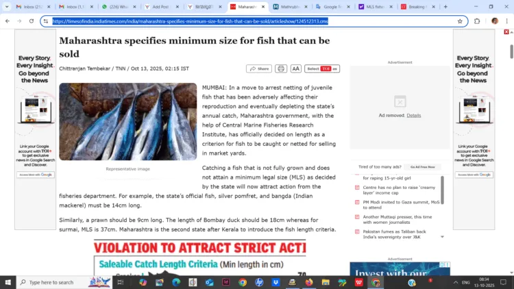 പൂർണ്ണമായി വളരാത്തതും സംസ്ഥാനം തീരുമാനിച്ച പ്രകാരം കുറഞ്ഞ നിയമപരമായ വലിപ്പം (മിനിമം ലീഗൽ സൈസ്-എംഎൽഎസ്) എത്താത്തതുമായ മത്സ്യത്തെ പിടിക്കുന്നത് ഇനി ഫിഷറീസ് വകുപ്പിന്റെ നടപടിക്ക് വിധേയമാകും. ഉദാഹരണത്തിന്, മഹാരാഷ്ട്ര സംസ്ഥാനത്തിന്റെ ഔദ്യോഗിക മത്സ്യമായ സിൽവർ പോംഫ്രെറ്റ്, ബാംഗ്ഡ (ഇന്ത്യൻ അയല) എന്നിവയ്ക്ക് 14 സെന്റീമീറ്റർ നീളമുണ്ടായിരിക്കണം.