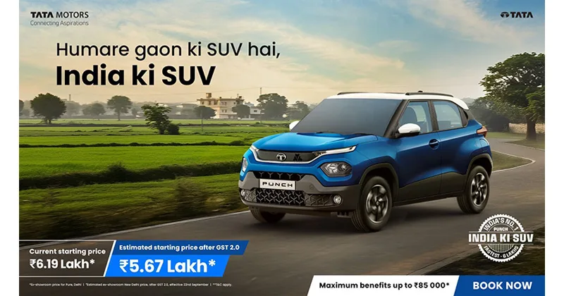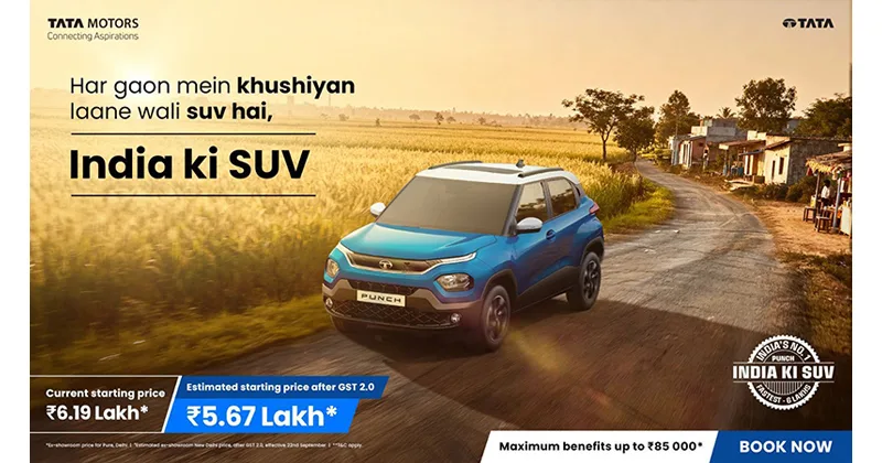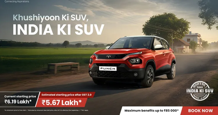 • സെഗ്‌മെന്റ് നിർവചിക്കുന്ന ഐക്കൺ: 2021-ൽ പുറത്തിറങ്ങിയതു മുതൽ, പഞ്ച് സബ്-കോംപാക്റ്റ് എസ്‌യുവി വിഭാഗത്തിന് തുടക്കം കുറിച്ചു, കൂടാതെ 2024 ൽ ഇന്ത്യയിൽ ഏറ്റവും കൂടുതൽ വിറ്റഴിക്കപ്പെട്ട കാറായി മാറി. അതെ ശക്തമായ മുന്നേറ്റം തുടർന്നുകൊണ്ട്, 2025 സെപ്റ്റംബറിൽ ഇന്ത്യയിൽ ഏറ്റവും കൂടുതൽ വിറ്റഴിക്കപ്പെട്ട ആദ്യ അഞ്ച് കാറുകളിൽ ഇത് ഇടം നേടി, ആദ്യമായി വാങ്ങുന്നവർക്ക് ആത്മവിശ്വാസവും ഫീച്ചറുകളാൽ സമ്പന്നവുമായ ഒരു എസ്‌യുവി അനുഭവം ഇത് വാഗ്ദാനം ചെയ്യുന്നു.