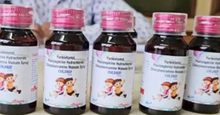 ചുമ മരുന്ന് കഴിച്ച് 22 കുട്ടികളാണ് രാജ്യത്ത് മരിച്ചത്. മധ്യപ്രദേശ്, രാജസ്ഥാന്‍ എന്നീ ജില്ലകളിലാണ് മരണങ്ങള്‍ റിപ്പോര്‍ട്ട് ചെയ്തത്. തുടര്‍ന്ന് നടത്തിയ പരിശോധനയില്‍ മരുന്നുകളില്‍ ഡൈഎത്തിലീന്‍ ഗ്ലൈക്കോള്‍ (ഡിഇജി) എന്ന വിഷാംശം അടങ്ങിയതായി കണ്ടെത്തി.