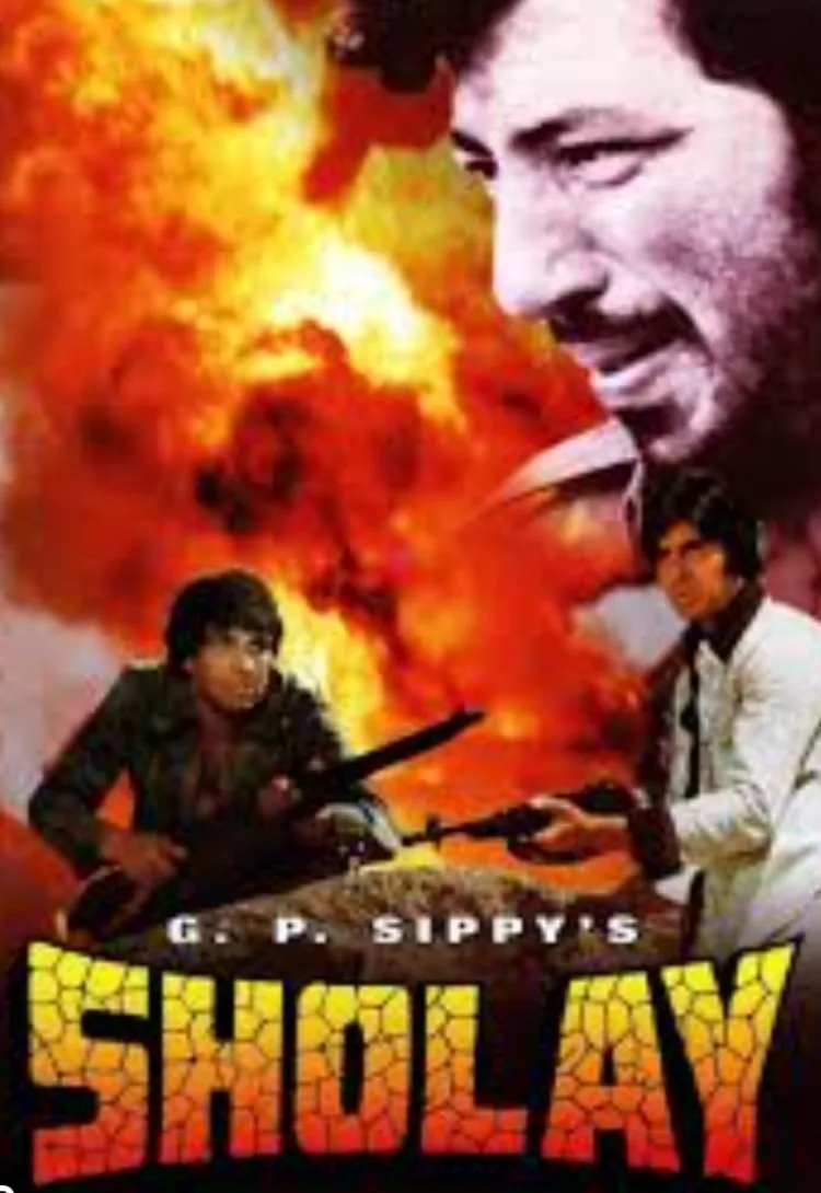 ഷോലെയിൽ ധർമ്മേന്ദ്ര, അമിതാഭ് ബച്ചൻ, ഹേമ മാലിനി, ജയ ബച്ചൻ, അംജത് ഖാൻ തുടങ്ങിയവർ ആയിരുന്നു അഭിനയിച്ചത്. ആർ.ഡി. ബർമൻ സംഗീതം നൽകി.