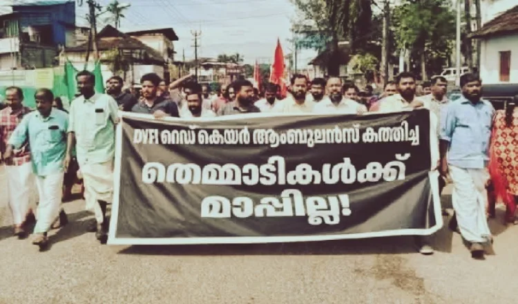 തിരുവനന്തപുരം : നെടുമങ്ങാട് ഡിവൈ എഫ് ഐയുടെ റെഡ് കെയർ ആംബുലൻസ് എസ് ഡി പി ഐക്കാർ കത്തിച്ചു. ജില്ലാ ആശുപത്രിയ്‌ക്ക് സമീപം പാർക്ക് ചെയ്തിരുന്ന വാഹനമാണ് രാത്രിയിൽ അഗ്നിക്കിരയാക്കിയത് . മൂന്ന് ഡിവൈ എഫ് ഐകാരെ മർദ്ദിച്ചതായും റിപ്പോർട്ടുകൾ ഉണ്ട്. എന്നാൽ ഇത്രയൊക്കെ സംഭവിച്ചിട്ടും ഇത് ചെയ്തത് എസ് ഡി പി ഐ ആണെന്ന് പറയാനുള്ള ചങ്കൂറ്റം ഡി വൈ എഫ് ഐ കാണിച്ചിട്ടില്ല. ഇതിനെതിരെ സോഷ്യൽ മീഡിയയിൽ വിമർശനവും, പരിഹാസവും ഉയരുന്നുണ്ട്.