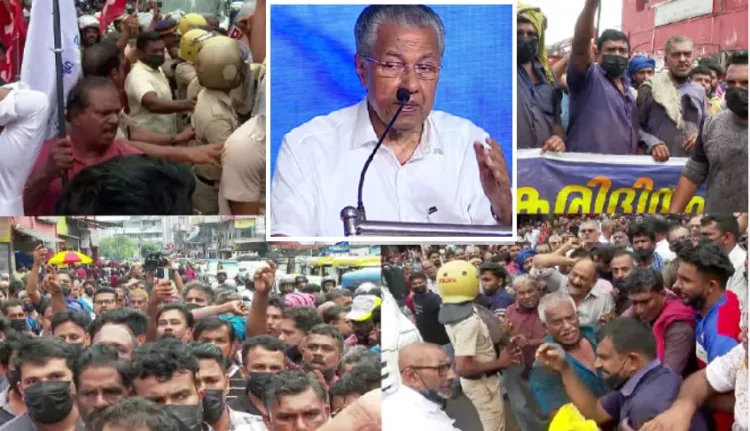 പാളയം മാർക്കറ്റിൽ വ്യാപാരികളും തൊഴിലാളികളും നടത്തിയ പ്രതിഷേധത്തിനിടെ പോലീസുമായി ഉന്തും തള്ളും, ഇതൊക്കെ നാടകമെന്ന് പിണറായി വിജയൻ