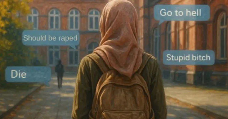 ഒരു അക്കാദമിക് പ്രോഗ്രാമിനിടെ പെൺകുട്ടി തന്റെ അധ്യാപികയെ ബഹുമാനത്തോടെയും ആവേശത്തോടെയും കെട്ടിപ്പിടിച്ചതായി മാധ്യമ റിപ്പോർട്ടുകൾ പറയുന്നു. വീഡിയോ ഓൺലൈനിൽ പ്രസിദ്ധീകരിച്ചതിനെത്തുടർന്ന് ഇസ്ലാമിക തീവ്രവാദികൾ ഇതിനെ എതിർക്കുകയും ബലാത്സംഗ, കൊലപാതക ഭീഷണികൾ പുറപ്പെടുവിക്കുകയും ചെയ്തു. പീഡനത്തിൽ ഭയന്ന പെൺകുട്ടി ക്ഷമാപണം നടത്തുന്ന വീഡിയോ പുറത്തിറക്കി. എന്നിരുന്നാലും, ഭീഷണികളും ദുരുപയോഗവും തുടർന്നു. തുടർച്ചയായ പീഡനത്തിൽ അസ്വസ്ഥയായ പ്രായപൂർത്തിയാകാത്തയാൾ ആത്മഹത്യയ്ക്ക് ശ്രമിച്ചതായി റിപ്പോർട്ടുണ്ട്.