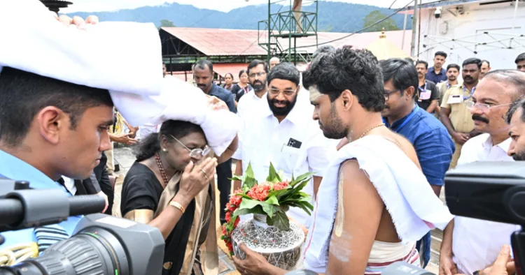 പത്തനംതിട്ട: ശബരിമല ദര്ശനം നടത്തി രാഷ്ട്രപതി ദ്രൗപദി മുര്മു. സന്നിധാനത്ത് ദേവസ്വം വകുപ്പ് മന്ത്രി വി.എന്. വാസവനും ദേവസ്വം ബോര്ഡ് പ്രസിഡന്റ് പി.എസ്. പ്രശാന്തും ചേര്ന്ന് സ്വീകരിച്ചു. പമ്പയില് നിന്ന് കെട്ടു നിറച്ച ശേഷമാണ് ശബരിമലയിലേക്ക് പുറപ്പെട്ടത്. ഇരുമുടിക്കെട്ടുമായി പതിനെട്ടാം പടി കയറി ദ്രൗപദി മുര്മു അയ്യനെ കണ്ട് തൊഴുതു. സന്നിധാനത്തും മാളികപ്പുറത്തും ദര്ശനം നടത്തിയ ശേഷം വാവര് നടയിലും ദര്ശനം നടത്തി.
