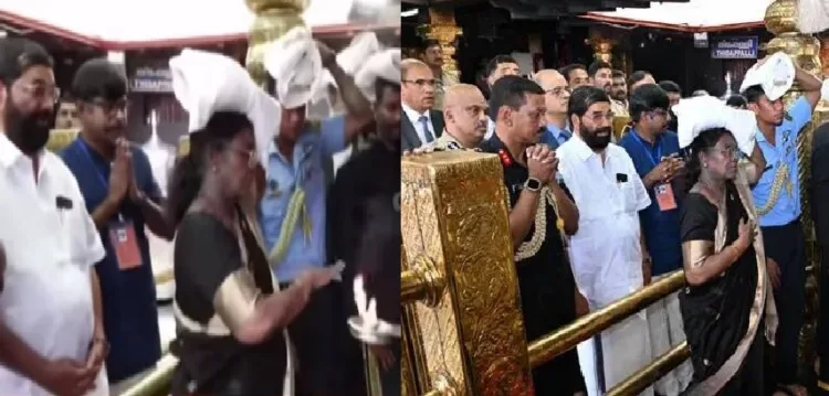 പത്തനംതിട്ട : കറുപ്പുടുത്ത് അയ്യപ്പദർശനം നടത്തുന്ന രാഷ്ട്രപതി ദ്രൗപതി മുർമുവിന്റെ ദൃശ്യങ്ങൾ അന്താരാഷ്ട്ര മാധ്യമങ്ങളിലടക്കം ശ്രദ്ധ നേടിക്കഴിഞ്ഞു. എന്നാൽ സോഷ്യൽ മീഡിയയിൽ ശ്രദ്ധ നേടിയ മറ്റൊരു ചിത്രം കൂടിയുണ്ട്. ഇന്ത്യൻ രാഷ്ട്രപതി പോലും അയ്യന് മുന്നിൽ വണങ്ങി നിൽക്കുമ്പോൾ കൈയ്യും കെട്ടി ശ്രീകോവിലിലേയ്ക്ക് നോക്കി നിൽക്കുന്ന ദേവസ്വം മന്ത്രി വാസവന്റെ ചിത്രം .