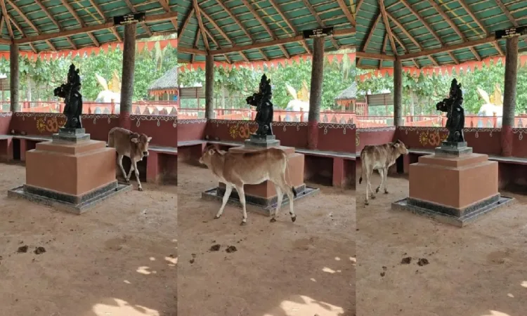 ഹൈദരാബാദ് ; നാമെല്ലാവരും ക്ഷേത്രത്തിൽ പോകുമ്പോൾ, ശ്രീകോവിലിനെയോ ക്ഷേത്രപരിസരത്തെയോ പ്രദക്ഷിണം വയ്ക്കാറുണ്ട്. എന്നാൽ ഹൈദരാബാദിന്റെ പ്രാന്തപ്രദേശത്തുള്ള ബടസിംഗാരത്തുള്ള യുഗതുലസി ഫൗണ്ടേഷൻ ഗോമഹാക്ഷേത്രത്തിൽ കൃഷ്ണ വിഗ്രഹത്തെ വലം വയ്ക്കുന്നത് കണ്ണ് കാണാനാകാത്ത ഒരു പശുക്കിടാവാണ് . ഫൗണ്ടേഷൻ പ്രസിഡന്റും മുൻ ടിടിഡി ബോർഡ് അംഗവുമായ കോളിസെറ്റി ശിവകുമാറാണ്, പശുക്കിടാവ് ഭഗവാൻ കൃഷ്ണന്റെ വിഗ്രഹത്തെ വലംവയ്ക്കുന്ന രംഗം പകർത്തി സോഷ്യൽ മീഡിയയിൽ പങ്കുവച്ചത്.