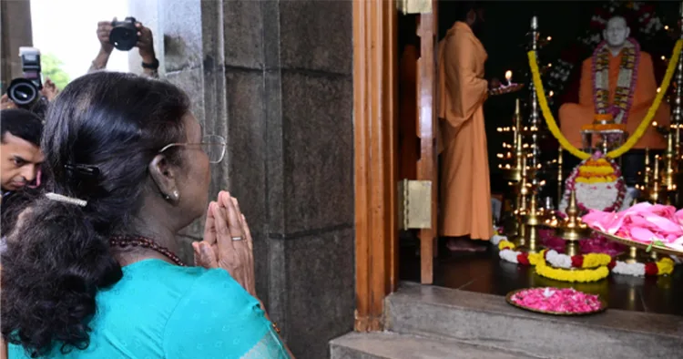 ഉച്ചയ്ക്ക് 12.40 ഓടെയാണ് രാഷ്ട്രപതി വർക്കല ക്ലിഫ് ഹൗസിൽ ഹെലികോപ്റ്ററിൽ ഇറങ്ങിയത്. അവിടെ നിന്നും റോഡ് മാർഗം ശിവഗിരിയിലെത്തിയ രാഷ്ട്രപതിയെ സംന്യാസിമാരും ജനപ്രതിനിധികളും ചേര്ന്ന് സ്വീകരിച്ചു. തുടര്ന്ന് ഗുരുവിന്റെ മഹാസമാധിയിലെത്തിയ രാഷ്ട്രപതി പുഷ്പാഞ്ജലി അര്പ്പിച്ച് പ്രാർത്ഥിച്ചു. കേരള ഗവര്ണര് രാജേന്ദ്ര വിശ്വനാഥ് ആര്ലേക്കര് പങ്കെടുക്കും. ശ്രീനാരായണ ധര്മ്മസംഘം ട്രസ്റ്റ് പ്രസിഡന്റ് സ്വാമി സച്ചിദാനന്ദ മുഖ്യപ്രഭാഷണം നടത്തി. ട്രഷറര് സ്വാമി ശാരദാനന്ദ ഗുരുസ്മരണ അര്പ്പിക്കും. ജനറല് സെക്രട്ടറി സ്വാമി ശുഭാംഗാനന്ദ സ്വാഗതം പറഞ്ഞു.