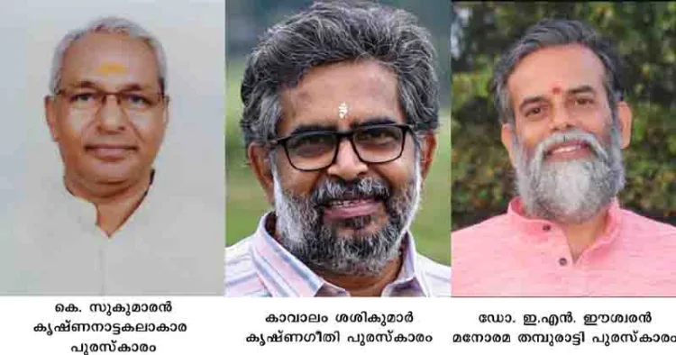 നവംബർ -4 ന് കോഴിക്കോട് തളി ഗുരുവായൂരപ്പൻ ഹാളിൽ നടക്കുന്ന രേവതി പട്ടത്താന സദസ്സിൽ പുരസ്കാരങ്ങൾ സമ്മാനിക്കും. വെങ്കലത്തിൽ തീർത്ത കൃഷ്ണശിൽപ്പവും, പ്രശസ്തിപത്രവും 15,000 രൂപയും ഉൾപ്പെട്ടതാണ് മൂന്ന് പുരസ്കാരങ്ങളും.