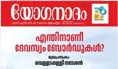 ആലപ്പുഴ: ദേവസ്വം ബോര്‍ഡുകള്‍ പിരിച്ചുവിടണമെന്ന് എസ്എന്‍ഡിപി യോഗം ജനറല്‍ സെക്രട്ടറി വെള്ളാപ്പള്ളി നടേശന്‍ എസ്എന്‍ഡിപി യോഗം മുഖപത്രമായ യോഗനാദത്തില്‍ എഴുതിയ എഡിറ്റോറിയലില്‍ ആവശ്യപ്പെട്ടു. അഞ്ച് ദേവസ്വം ബോര്‍ഡുകളും അഴിമതിയിലും കൊള്ളയിലും മുങ്ങിയെന്നും ശബരിമല സ്വര്‍ണക്കൊള്ള സര്‍ക്കാരിനെയും ദേവസ്വം ബോര്‍ഡിനെയും പ്രതിസന്ധിയിലാക്കിയെന്നും എഡിറ്റോറിയലില്‍ പറയുന്നു.
