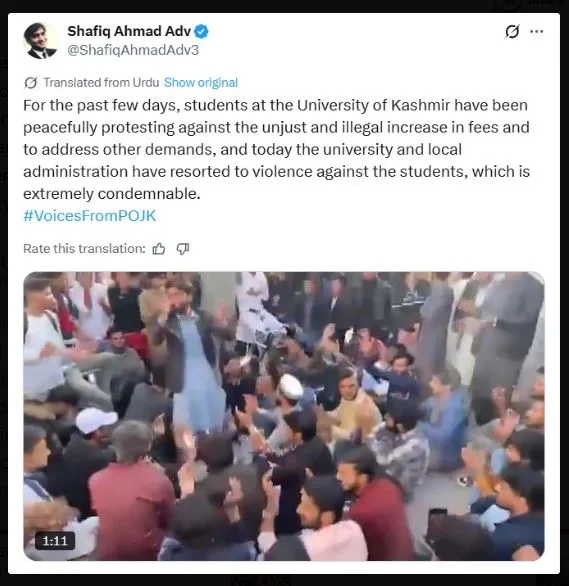 ഒരാഴ്ച മുന്‍പ് ജെന്‍സീ കലാപം പാക് അധിന കശ്മീരില്‍ പൊട്ടിപ്പുറപ്പെട്ടിരുന്നു. അതിനെ ശക്തമായി അടിച്ചമര്‍ത്തിയതിന് പിന്നാലെയാണ് അടുത്ത കലാപതരംഗം പൊട്ടിപ്പുറപ്പെട്ടിരിക്കുന്നത്. വിദ്യഭ്യാസ ഫീസ് ഉയര്‍ത്തിനെതിരായ വിദ്യാര്‍ത്ഥികളുടെ സമാധാന സമരമാണ് പിന്നീട് അക്രമാസക്ത സമരമായി മാറിയത്. സമാധാനപരമായി സമരം ചെയ്യുന്ന വിദ്യാര്‍ത്ഥികള്‍ക്ക് നേരെ ഒരു അജ്ഞാതന്‍ നിറയൊഴിച്ചതോടെയാണ് വിദ്യാര്‍ത്ഥിസമരം അക്രമത്തിലേക്ക് തിരിഞ്ഞത്. മുസഫറാബാദിലാണ് സംഭവം. ഒരാള്‍ വിദ്യാര്‍ത്ഥികള്‍ക്ക് നേരെ നിറയൊഴിക്കുന്നതിന്റെ വീഡിയോ വൈറലാണ്. ഷെഹ്ബാസ് ഷെരീഫ് സര്‍ക്കാരിനെതിരായ വിദ്യാര്‍ത്ഥികളുടെ അതൃപ്തിയാണ് സമരത്തിന് പിന്നില്‍.