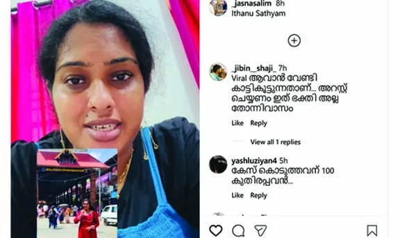 ഞാന് ഒരു പുതിയ ന്യൂസ് കണ്ടു. ഗുരുവായൂര് ദേവസ്വം കലാപാഹ്വാനത്തിന് എന്റെ പേരില് വീണ്ടും കേസുകൊടുത്തു എന്നു പറഞ്ഞിട്ട്. യഥാര്ത്ഥത്തില് എന്താ സംഭവം എന്ന് ആര്ക്കും അറിയില്ല. ഞാന് മനസാ വാച അറിയാത്ത കാര്യത്തിനാണ് കേസെടുത്തിരിക്കുന്നത്. ഞാന് ഗുരുവായൂരില് നിന്ന് ഇറങ്ങിവരുന്ന വീഡിയോ ഐസിജി ചാനലുകാര് എടുത്ത് പോസ്റ്റ് ചെയ്തിരുന്നു. അത് ന്യൂസായ സമയത്ത് അവര് തന്നെ ഡിലീറ്റ് ചെയ്തിരുന്നു. അതു വച്ചിട്ടാണ് ഗുരുവായൂര് ദേവസ്വം കേസ് കൊടുത്തത്.