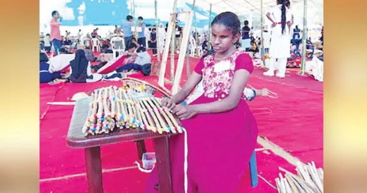 പാലക്കാട്: അകക്കണ്ണിന്റെ വെളിച്ചത്തില് ശരണ്യ നെയ്തെടുത്തത് നൂറായിരം സ്വപ്നങ്ങള്. വിധി പലതരത്തില് വേട്ടയാടിയപ്പോള് തോറ്റുകൊടുക്കാന് കോട്ടയം കാളകെട്ടി അസീസി സ്കൂള് ഫോര് ബ്ലൈന്ഡിലെ ശരണ്യ സോമന് തയ്യാറായിരുന്നില്ല. ചൂരല് ഉത്പന്ന നിര്മാണത്തില് തന്റെ കാഴ്ചപരിമിതിയെ അതിജീവിച്ച് സ്പെഷ്യല് സ്കൂള് മേളയില് മത്സരിക്കാനെത്തി. മത്സരം തുടങ്ങി മണിക്കൂറുകള്ക്കകം തന്നെ തന്റെ ഇനം തയ്യാറാക്കി ശ്രദ്ധനേടി ഈ കൊച്ചുമിടുക്കി.